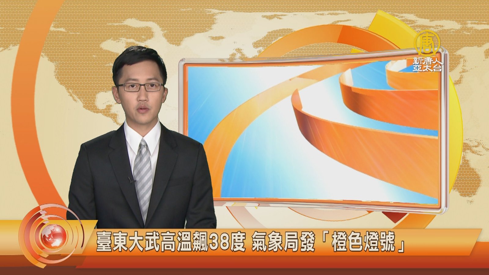 歡迎回來,帶您關心天氣,今天白天真的很熱,氣象局也針對台東縣地區發布高溫資訊「橙色燈號」,而今天最高溫出現在台東縣大武38.9度,台北市高溫也來到35.9度,屢創高溫紀錄,不過入夜後鋒面接近,北部及東北部深夜開始有些短暫陣雨,週五隨著鋒面通過及東北風增強,北台灣高溫也將下降到28、29度,其他地區也會有短暫陣雨或雷雨發生,天氣較不穩定,提醒觀眾朋友留意天氣變化。 //asset3.ntdtv.com.tw/public/uploads/assets/2019/04/25/2019-04-25-5cc1b2d14257d.mp4 高溫|臺東|大武|橙色燈號|天氣預報|陣雨|雷雨2019-04-25 21:14:57
