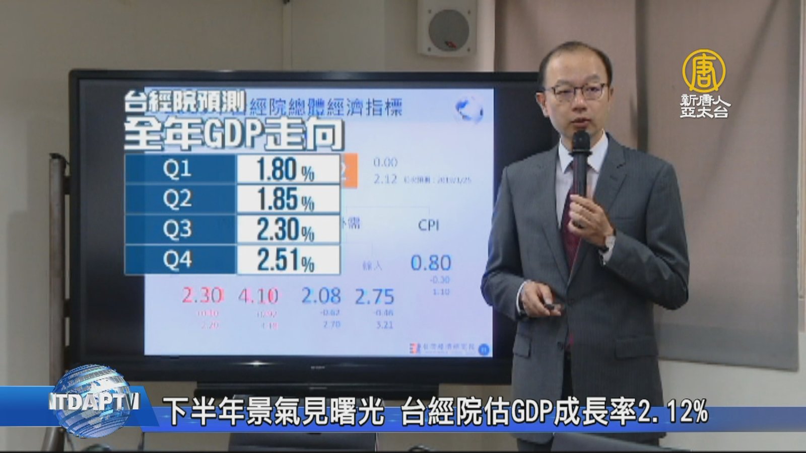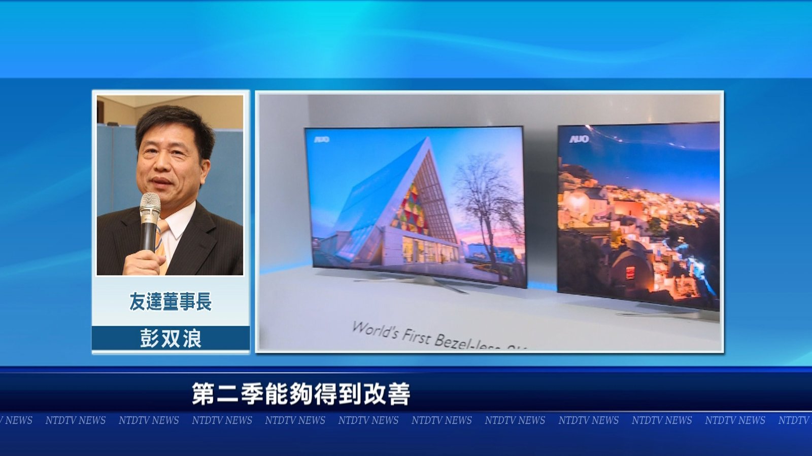 面板大廠友達今天(25日)舉行法人說明會,公布第一季財報,表現不如預期,主因是傳統淡季,以及供需不平衡等原因,南韓面板大廠樂金顯示器,也面臨首季虧損,面對今年整體表現,友達董事長彭双浪表示,美中貿易戰朝正向發展,以及第二季進入面板旺季,下半年面板景氣表現,值得關注。 //asset1.ntdtv.com.tw/public/uploads/assets/2019/04/25/2019-04-25-5cc1b468bd17d.mp4 友達|面板|彭双浪|蔡國新|樂金|LG2019-04-25 22:45:49