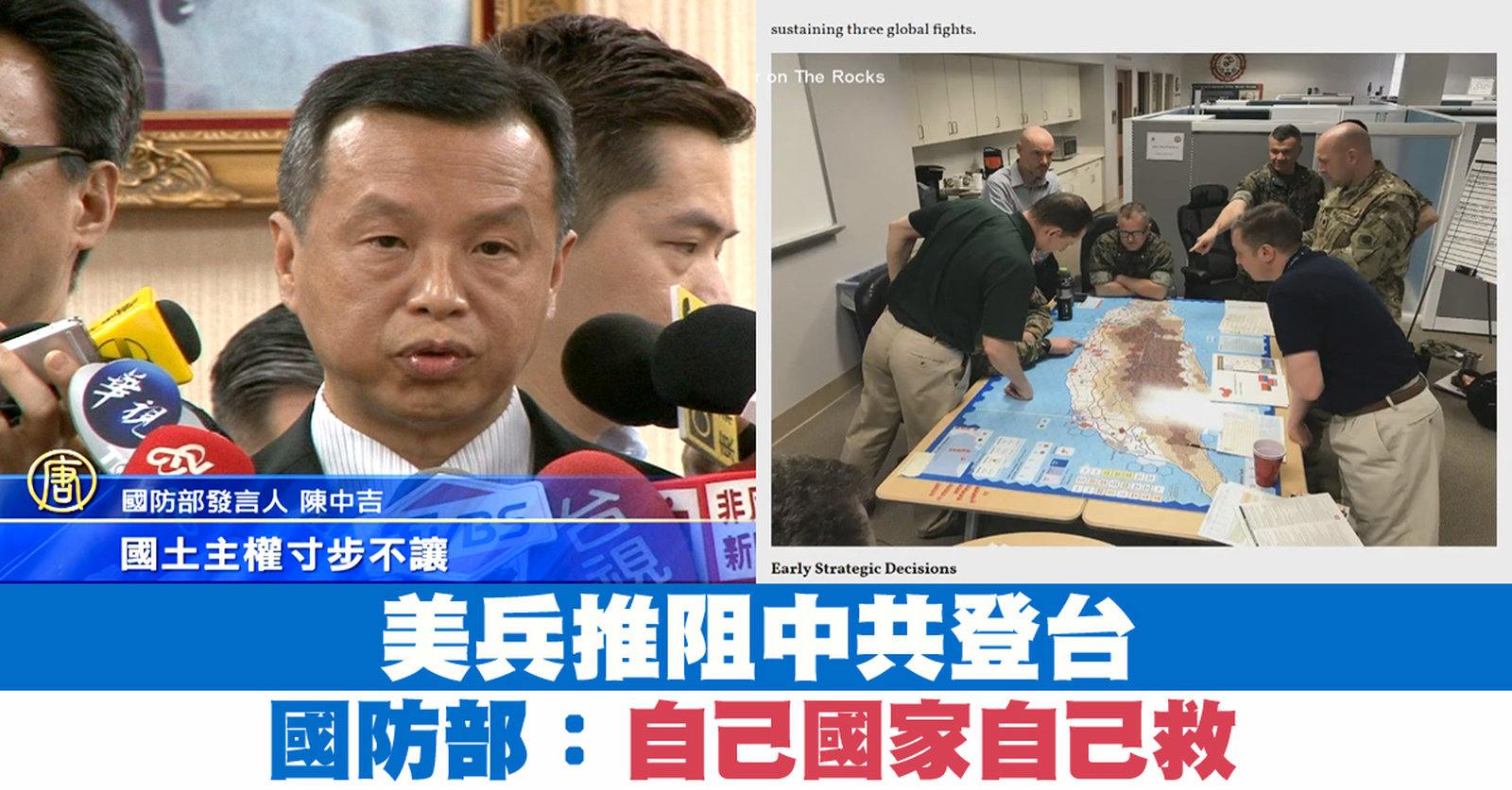 美兵推阻中共登台 國防部:自己國家自己救