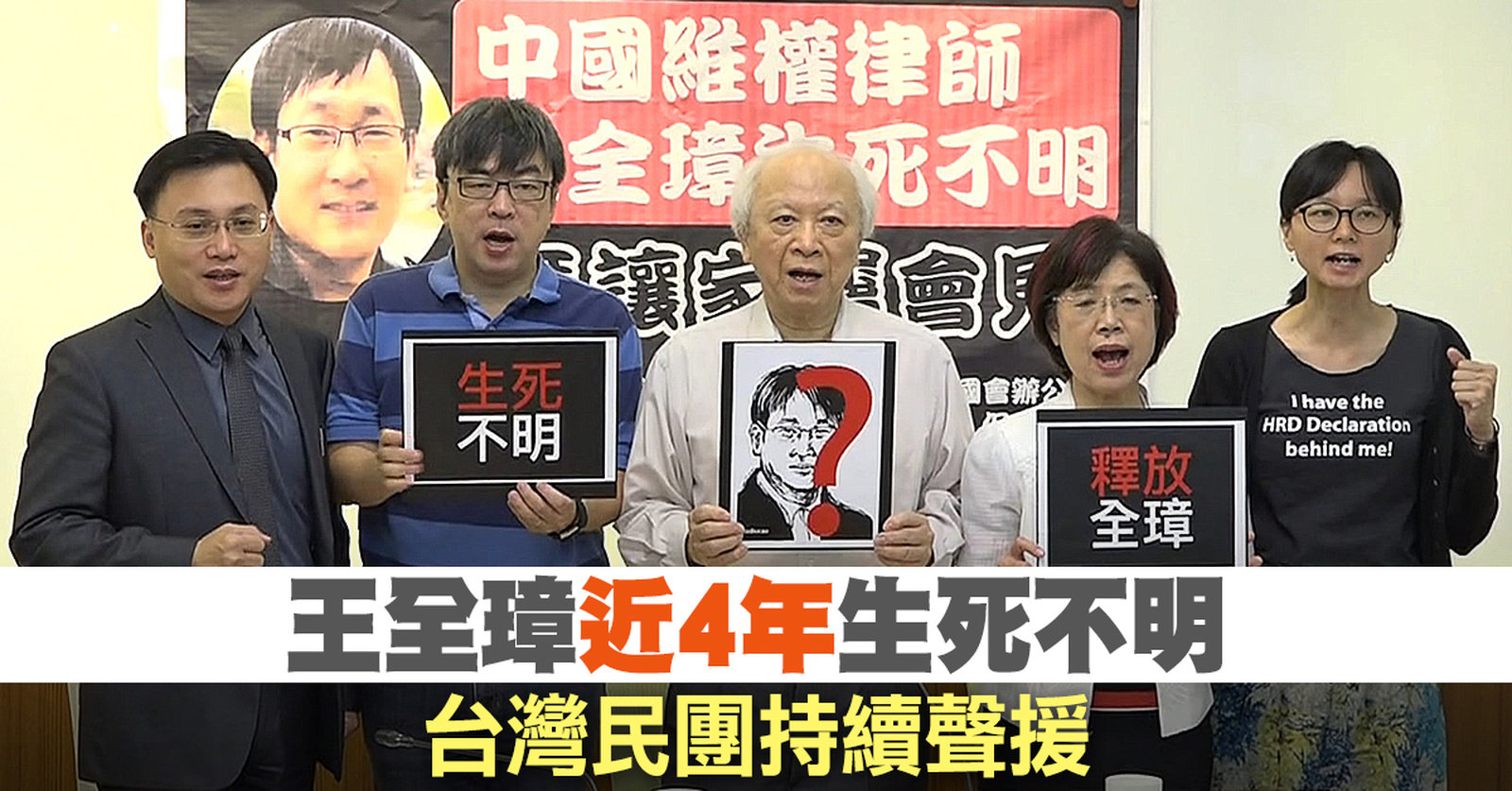 中國維權律師王全璋,被中共非法羈押至今近4年,但從秘密審判到定罪判刑,官方不僅禁止家屬探視,連一張照片都沒公開,生死不明,王全璋的妻子李文足今天透過台灣民間團體,以影片發聲,盼望台灣和國際社會能持續關注。 //asset2.ntdtv.com.tw/public/uploads/assets/2019/04/30/2019-04-30-5cc84316607aa.mp4 王全璋|中國人權律師|良心犯|李文足|台灣|中共2019-04-30 20:47:16
