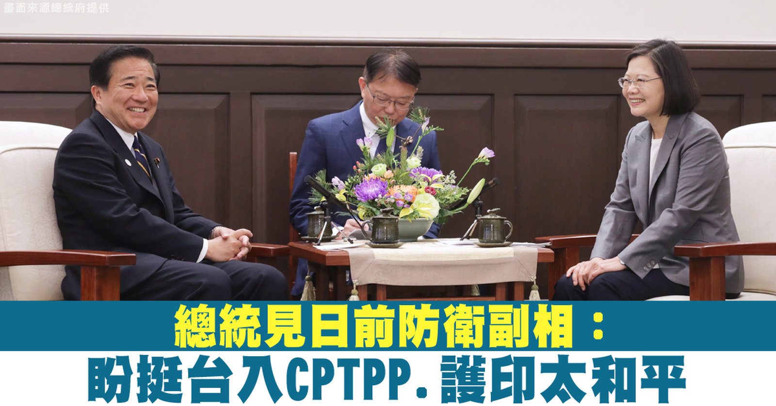 總統見日前防衛副相:盼挺台入CPTPP.護印太和平