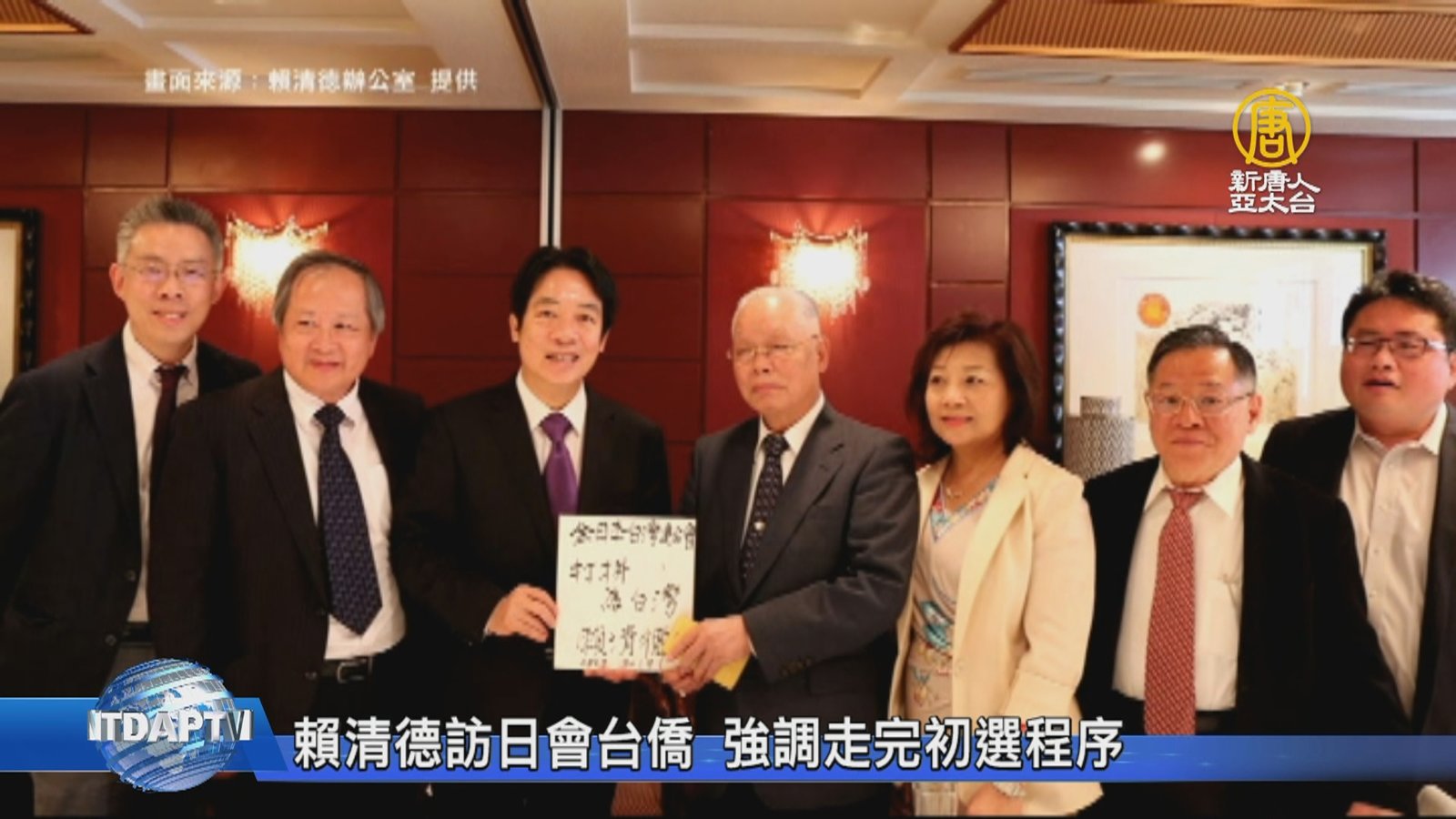 鏡頭轉回台灣,前行政院長賴清德訪問日本,今天上午與全日本台灣聯合會成員早餐會,對於記者提問,國內傳出「滅賴三部曲」要消滅他,賴清德沒有正面回應,只表示他難得來一趟日本,選舉的紛擾就留在國內。 //asset2.ntdtv.com.tw/public/uploads/assets/2019/05/09/2019-05-09-5cd428216349a.mp4 賴清德|訪日|總統初選|2020|蔡英文2019-05-09 21:16:17