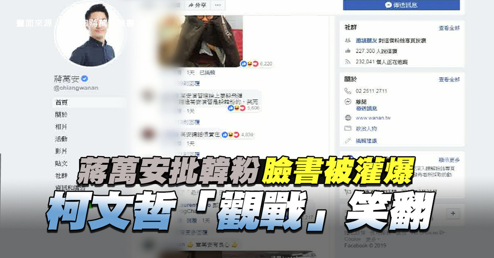 蔣萬安批韓粉臉書被灌爆 柯文哲「觀戰」笑翻