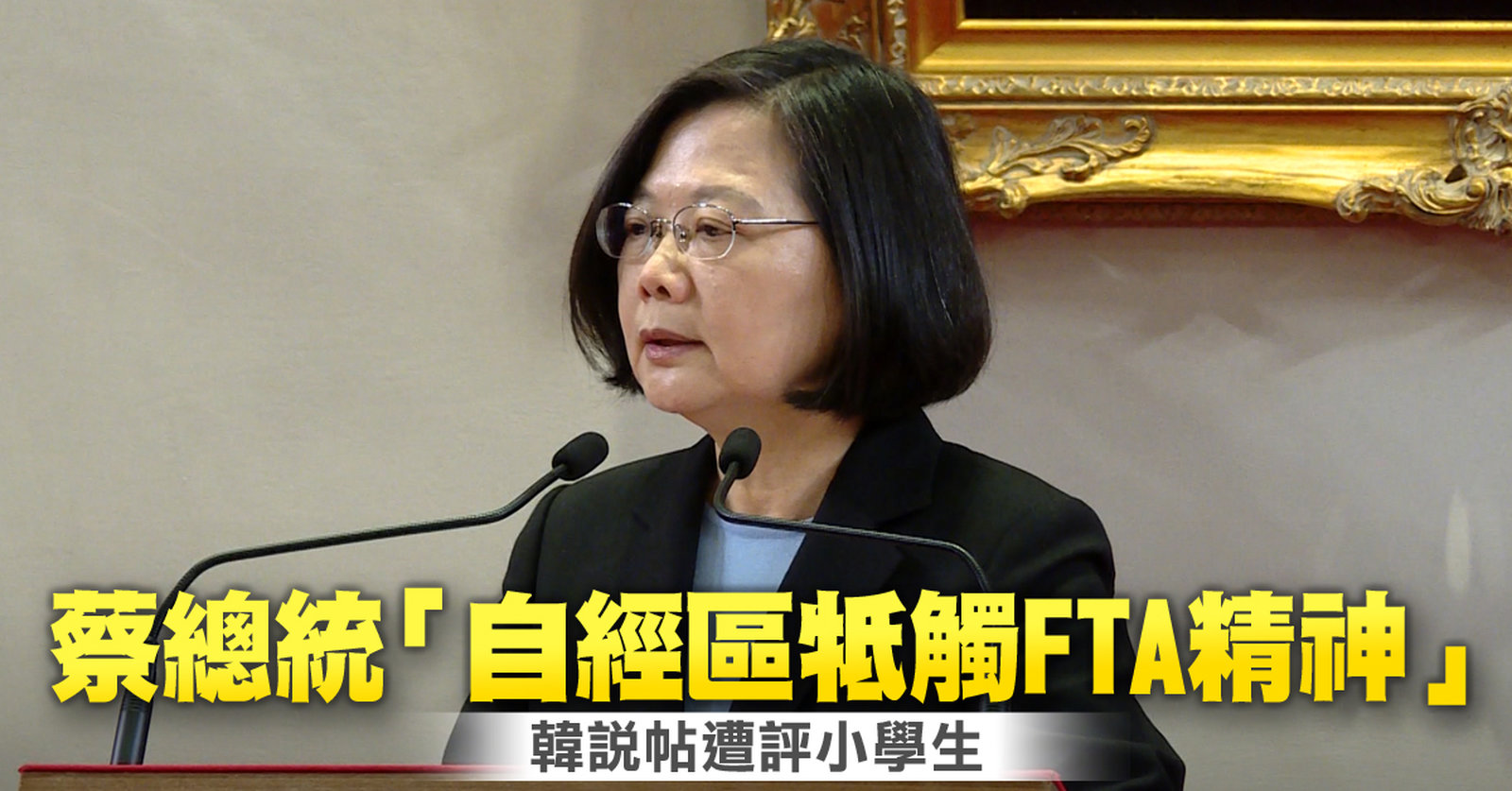 蔡總統「自經區牴觸FTA精神」 韓說帖遭評小學生