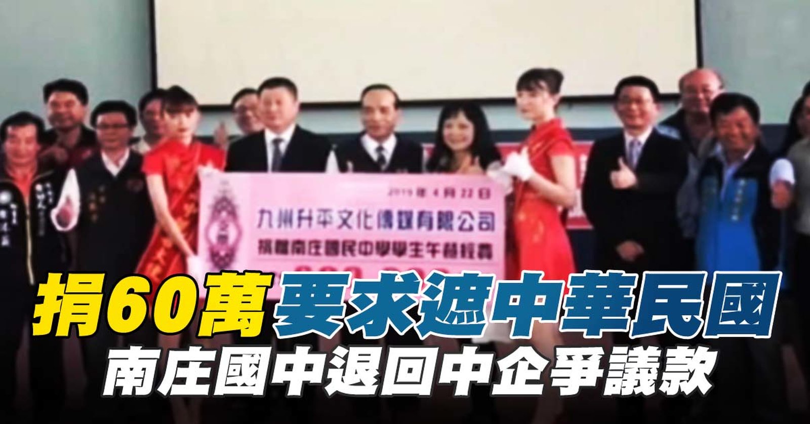 捐60萬要求遮中華民國 南庄國中退回中企爭議款