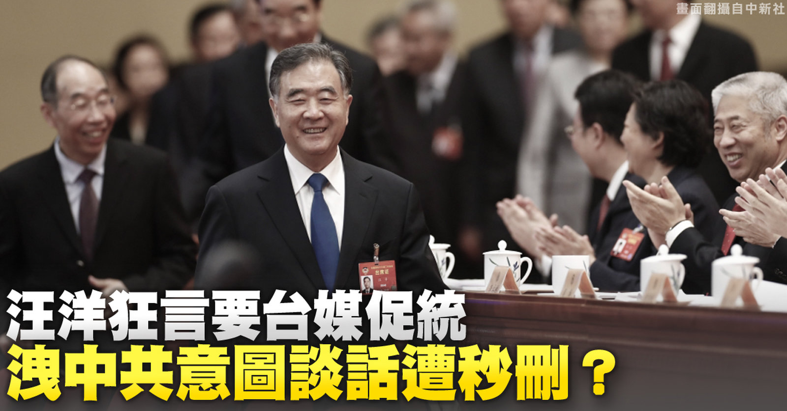 汪洋狂言要台媒促統 洩中共意圖談話遭秒刪?