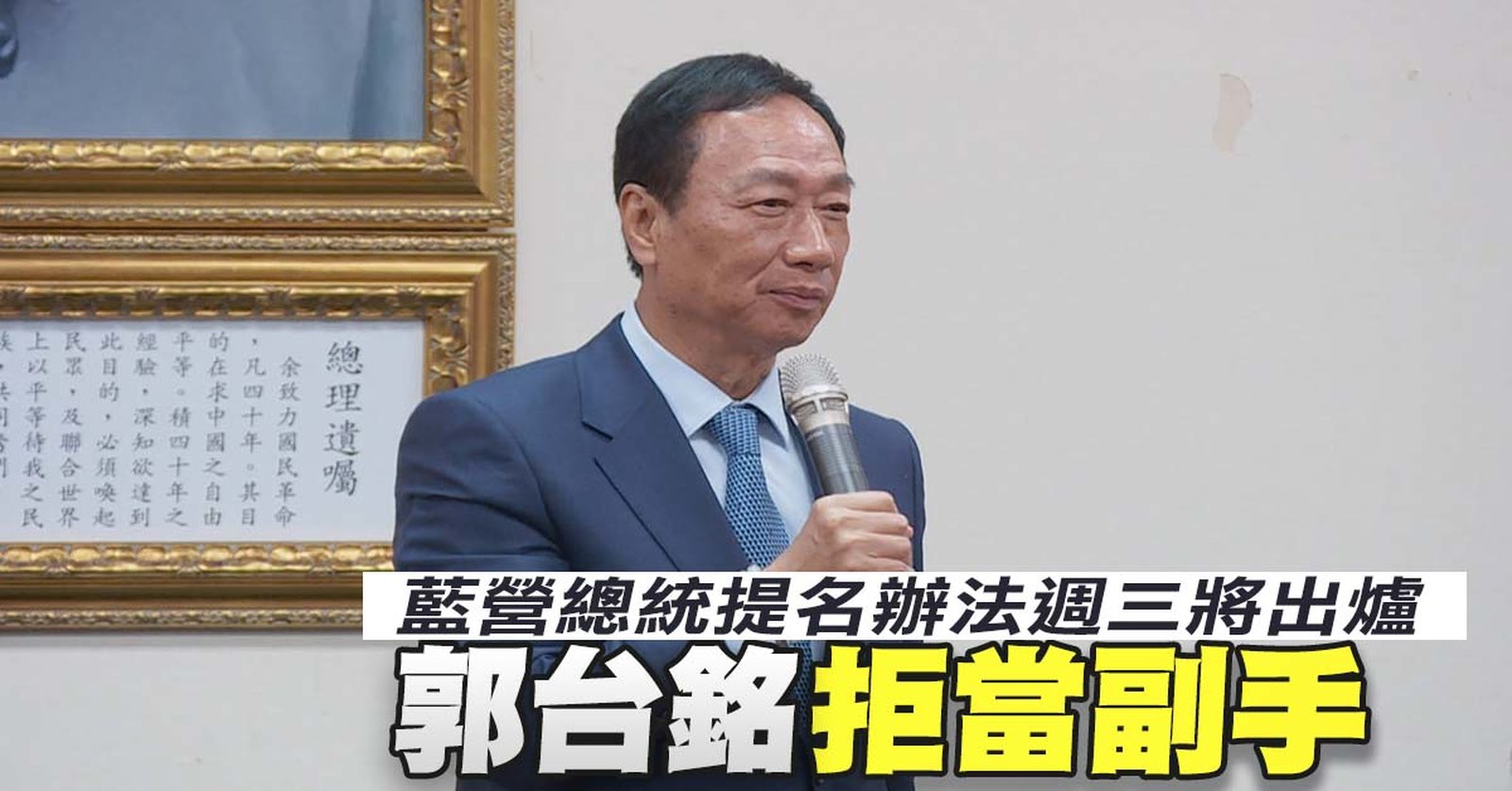 藍營總統提名辦法週三將出爐 郭台銘拒當副手