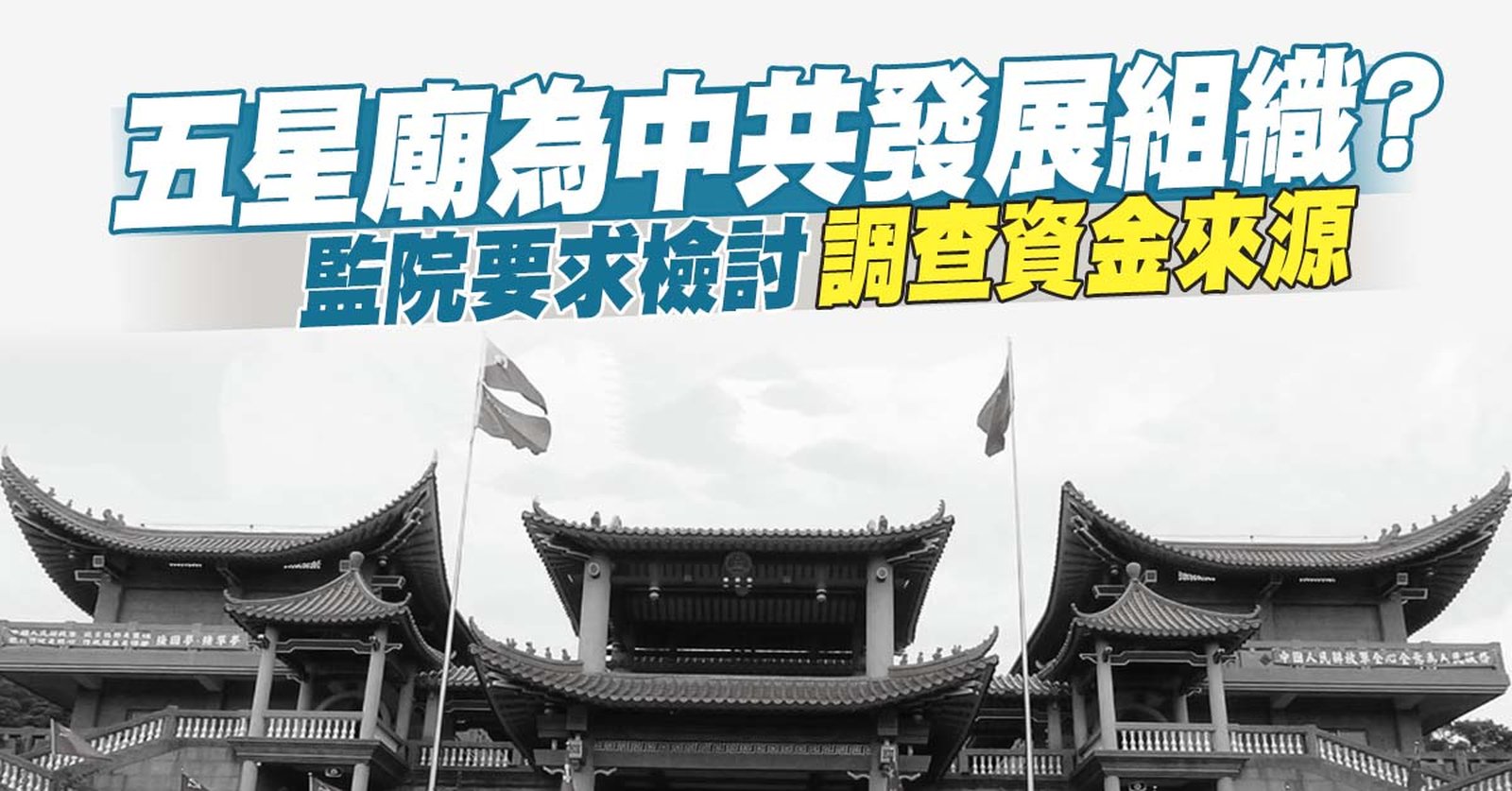 五星廟為中共發展組織? 監院要求檢討調查資金來源