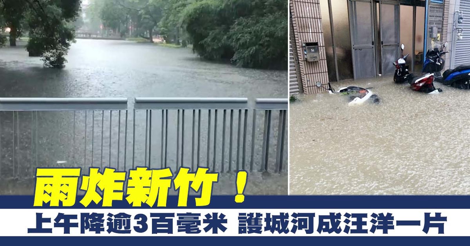 雨炸新竹!上午降逾3百毫米 護城河成汪洋一片