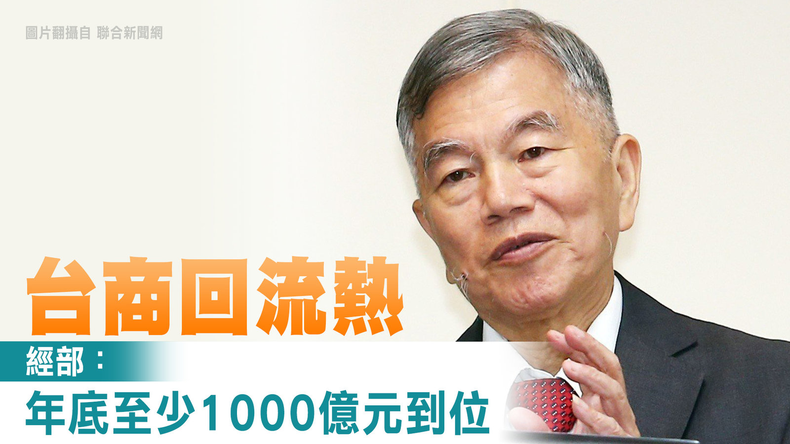 好的再來看到,由於美中貿易戰的因素,台商回流的速度,正在加速。經濟部長沈榮津今天(20號)就表示,今年年底至少會有新台幣1000億元到位,他更親自打電話給台商電子五哥的董事長,並表示,目前大概有四家廠商會回台。 //asset2.ntdtv.com.tw/public/uploads/assets/2019/05/20/2019-05-20-5ce29f546371f.mp4 台商回流|經濟部|沈榮津|電子五哥2019-05-20 20:39:53