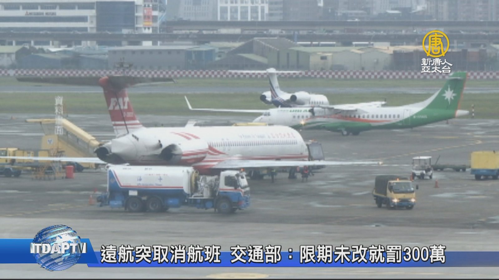 遠航無預警停飛31航班,影響上千名旅客,交通部政次王國材坦言,令人頭痛!因為民航局調查發現,遠航為了汰換老舊機隊調度出問題,導致機隊飛時暴表,停飛部分航班,交通部警告,再不改善就要罰300萬,但立委批評,遠航經營不善每況愈下,這次無預警停飛,下次恐怕就無預警倒閉,交通部得嚴格監控。 //asset1.ntdtv.com.tw/public/uploads/assets/2019/05/20/2019-05-20-5ce2a7970b66f.mp4 遠航無預警停飛|遠航|交通部|民航局2019-05-20 21:11:51