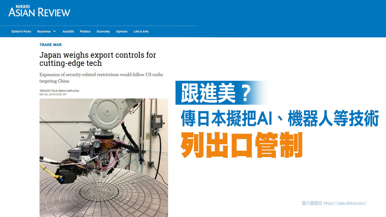 跟進美? 傳日本擬把AI、機器人等技術列出口管制|寰宇掃描