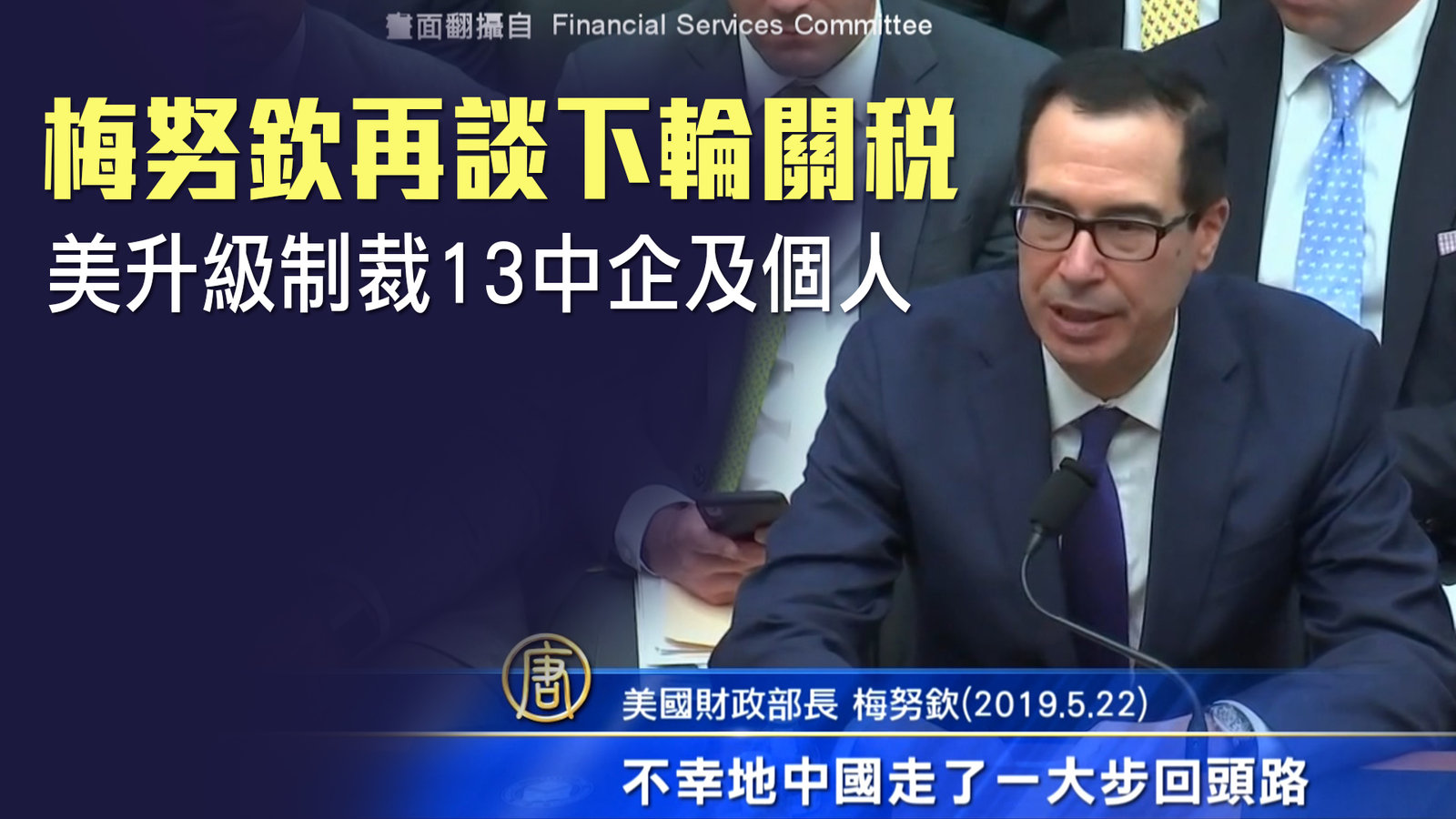 新聞一開始,帶您鎖定。美國商務部將華為等中企列入黑名單後,美國國務院今天(23日)再宣布,對13個中企或個人實施制裁。而美中除了科技戰之外,繼續帶您關注美中貿易談判本身的最新進展。美國財政部長梅努欽(22號)表示,如果中方想要重啟談判,就必須以先前談判的成果為基礎,進行談判。 //asset2.ntdtv.com.tw/public/uploads/assets/2019/05/23/2019-05-23-5ce69c0246b15.mp4 美中貿易戰|科技戰|梅努欽2019-05-23 21:11:30