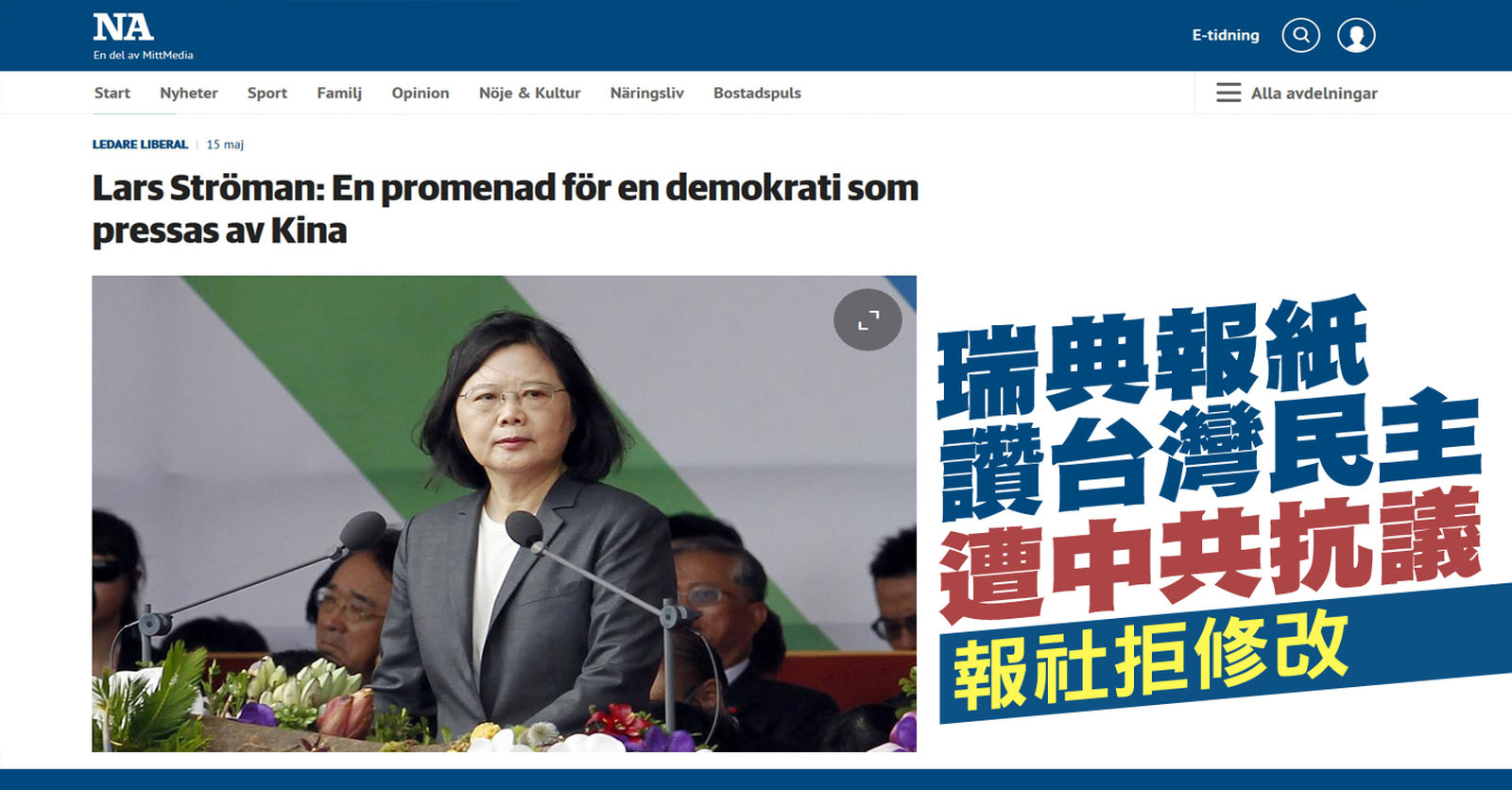 瑞典報紙讚台灣民主遭中共抗議 報社拒修改|寰宇掃描