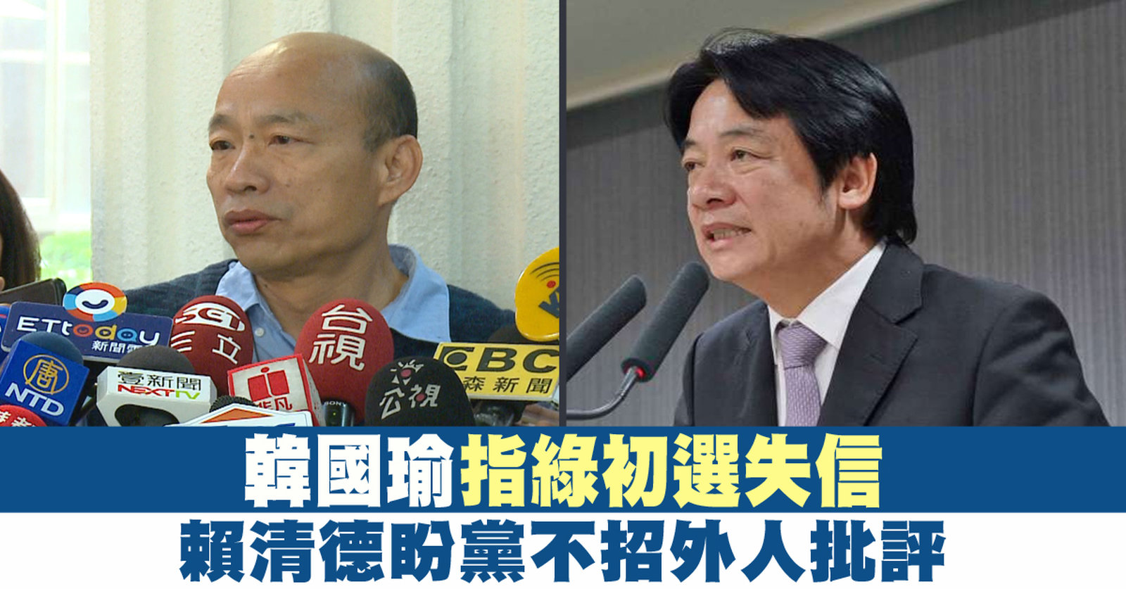 韓國瑜指綠初選失信 賴清德盼黨不招外人批評