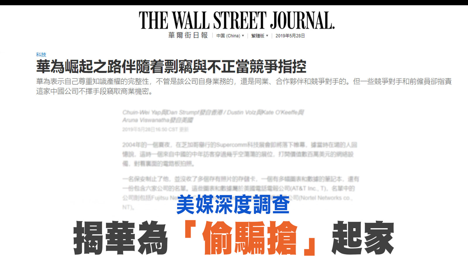 接下來,帶您看到,美國為何要封殺華為?美國《華爾街日報》,發表2萬字的長篇調查報導,揭露華為所謂的「發展」,都是靠「不擇手段竊取商業機密」、「不正當競爭搶佔市場」,更是首次披露5G技術是盜竊自美國公司。請看我們今天的透視焦點。 //asset1.ntdtv.com.tw/public/uploads/assets/2019/05/28/2019-05-28-5ced29f9878b9.mp4 華為|竊取商業機密|科技戰|中共間諜2019-05-28 21:26:57