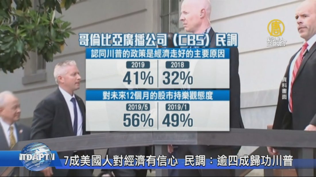 美中貿易戰持續升溫,美國民眾怎麼看呢?哥倫比亞廣播公司(CBS)日前公布民調顯示,有高達七成美國民眾,對經濟 有信心。民調顯示:有41%的人表示,川普的政策是經濟走好的主要原因。在2018年初時,這一比例才32%。儘管目前美中兩國正處於貿易對歭,波動不定,但有56%的人表示,對未來12個月的股市持樂觀態度。而這一數字,也高於今年一月份的49%。 //asset3.ntdtv.com.tw/public/uploads/assets/2019/05/29/2019-05-29-5cee76cd8a9da.mp4 美中貿易戰|川普|民調|美國經濟2019-05-29 20:09:20