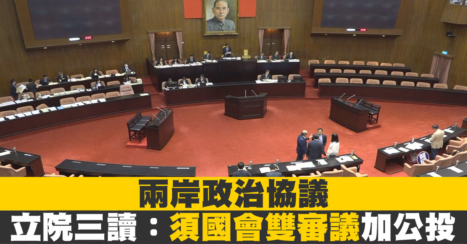 火線新聞,把焦點轉回台灣,立法院今天三讀通過「兩岸人民關係條例」,增訂第5條之3條文,明定兩岸協商簽署政治協議,需要通過3道程序,除了經由國會「雙審議」,並舉辦全國性公民投票通過後,才能簽署、換文,由總統公布生效。而高門檻程序比照修憲,要「全體立法委員3/4出席,及出席委員3/4同意」,另外條文也明定,主權國家地位與自由民主憲政秩序,不得作為政治議題談判及協議項目。 //asset1.ntdtv.com.tw/public/uploads/assets/2019/05/31/2019-05-31-5cf11a90c8f23.mp4 兩岸政治協議|立法院|三讀|公投|兩岸人民關係條例2019-05-31 20:45:09