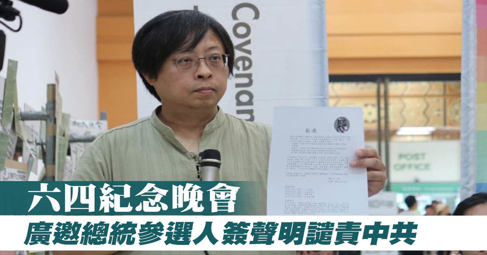 六四紀念晚會 廣邀總統參選人簽聲明譴責中共