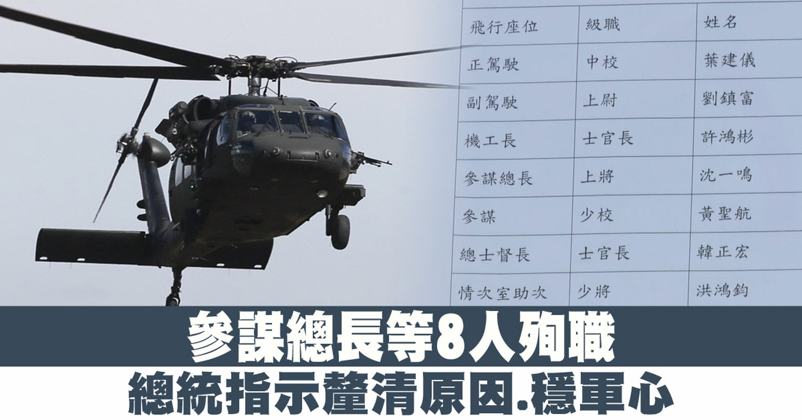 參謀總長等8人殉職 總統指示釐清原因.穩軍心