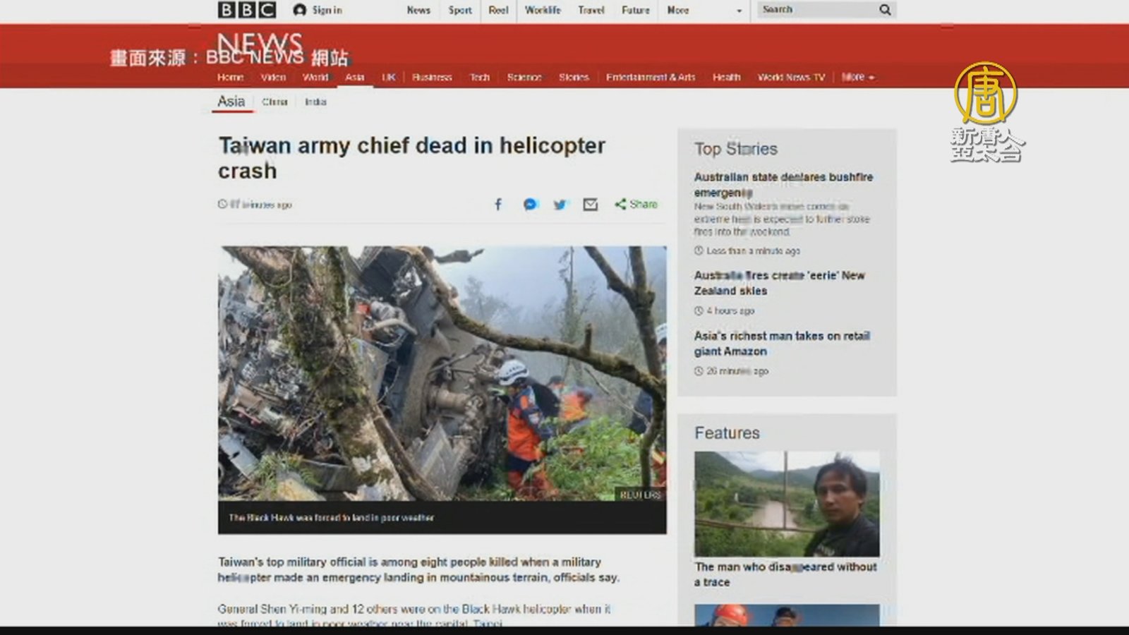 對於黑鷹直升機失事,美國直升機製造商塞考斯基飛機公司表示,他們已經知道這起不幸事件,表達最深切的哀悼,也已經向調查機構提供協助。中華民國國防部為求慎重,昨天事故後,就要求空軍、陸軍共44架黑鷹全面停飛,執行「天安特檢」,就操控、雷達、動力、結構等系統檢查。 //asset2.ntdtv.com.tw/public/uploads/assets/2020/01/03/2020-01-03-5e0f2fd006e13.mp4 黑鷹迫降|黑鷹直昇機|直升機製造商|天安特檢2020-01-04 08:14:36