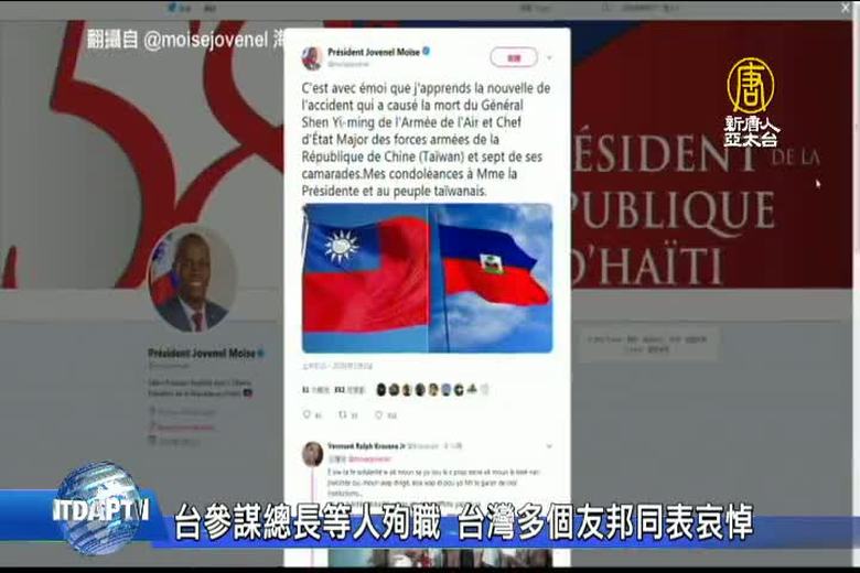 國軍黑鷹直升機昨天重大事故,至少26國的政要與友人致哀。今天美國在台協會罕見降下半旗哀悼,日本台灣交流協會以及德國、英國、澳洲、波蘭的駐台機構,今天也紛紛發文哀悼,並祝福生還者早日康復。 //asset2.ntdtv.com.tw/public/uploads/assets/2020/01/03/2020-01-03-5e0f2f937a846.mp4 黑鷹迫降|黑鷹直升機|駐台機構|日本台灣交流協會|臉書2020-01-03 22:14:11