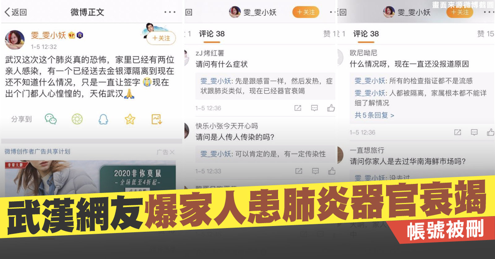 武漢網友爆家人患肺炎器官衰竭 帳號被刪|中國一分鐘