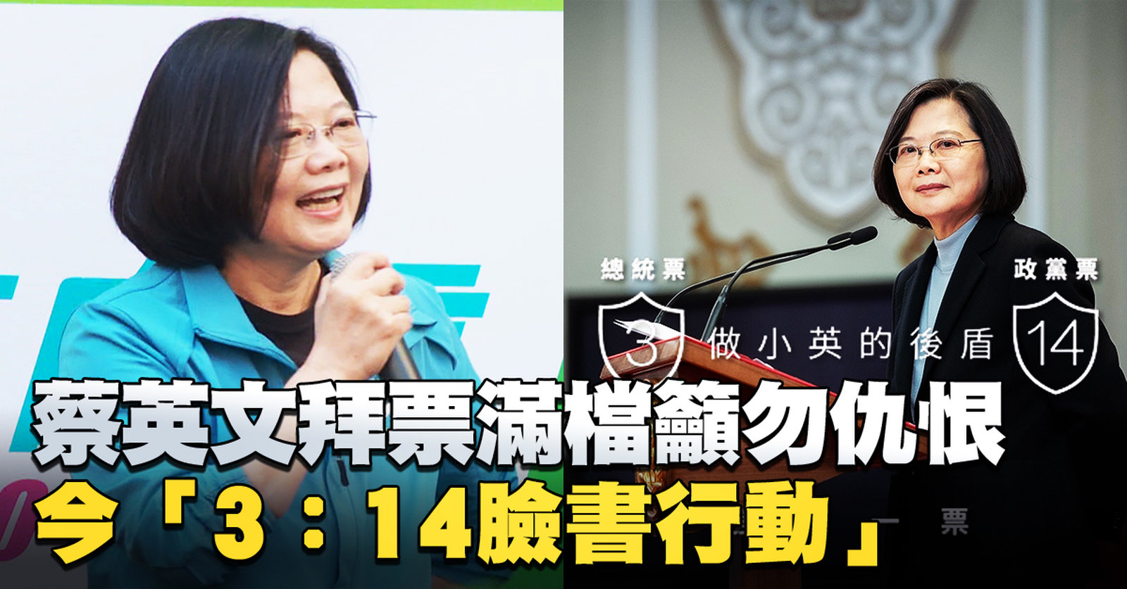 明天就要投票了,把握能夠宣傳的最後一天,總統蔡英文今天回防雙北,進行最後的車隊掃街,途中還有人拿著Stand With Hongkong的橫幅撐香港,蔡英文也喊出「四個不要、三個一定」,呼籲選民不要仇恨對手的支持者,要用愛跟團結來選舉。 //asset2.ntdtv.com.tw/public/uploads/assets/2020/01/10/2020-01-10-5e186a772c272.mp4 蔡英文|2020|2020總統大選|3:14臉書行動2020-01-10 20:11:42