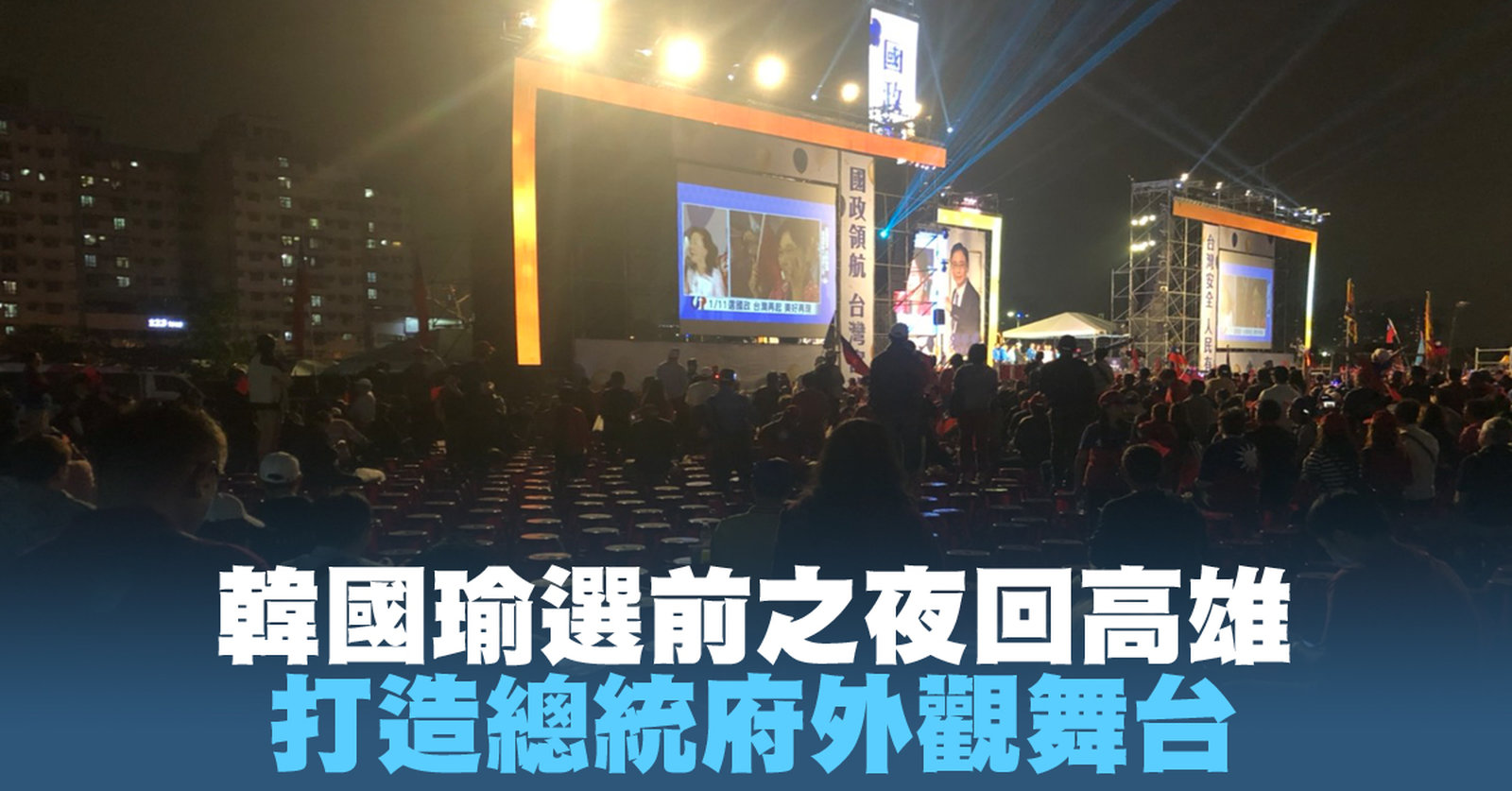 韓國瑜選前之夜回高雄 打造總統府外觀舞台