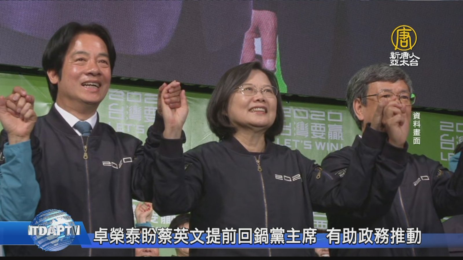 總統蔡英文高票連任成功,依照民進黨黨章規定,她將於5月20日就職後,回鍋兼任黨主席,現任黨主席卓榮泰今天發文表示,將建議蔡總統提前回任黨主席,黨部將全力配合,讓黨部人事儘早定下來,也有助所有政務推動。 //asset2.ntdtv.com.tw/public/uploads/assets/2020/01/14/2020-01-14-5e1db2a516214.mp4 民進黨|黨主席|卓榮泰|蔡英文|林飛帆|內閣2020-01-14 20:20:06