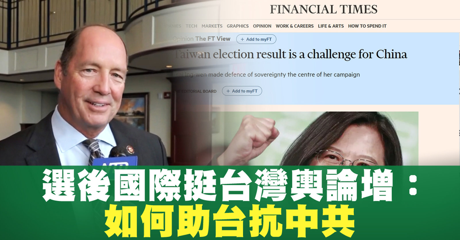 總統大選落幕,國際社會挺台灣的聲音持續增加。美國眾議院議長裴洛西說,期待增進與台灣的夥伴關係;眾議員約霍呼籲中共,尊重台灣主權;英國金融時報社論指出,民主國家應該思考,如何協助台灣對抗中共的進逼。 //asset2.ntdtv.com.tw/public/uploads/assets/2020/01/14/2020-01-14-5e1db05e74ac3.mp4 總統大選|2020|蔡英文|裴洛西|約霍2020-01-14 20:10:05