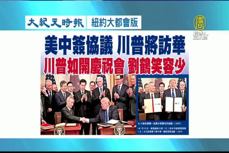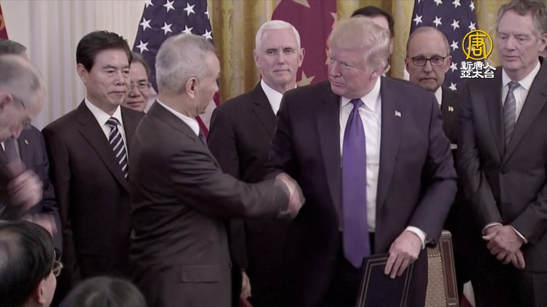 美中兩國終於在15號簽署第一階段貿易協議,不過,中共長期以來都存在,簽協議,卻不履行協議的問題。為了防範北京反悔,美方在擬訂協議時,特別將「強制執行機制」納入考量。如果中共再次毀約,要怎麼處理。接下來的新聞,帶您了解。 //asset3.ntdtv.com.tw/public/uploads/assets/2020/01/17/2020-01-17-5e21a8b1ba0f6.mp4 美中貿易戰|執行機制2020-01-17 20:26:06