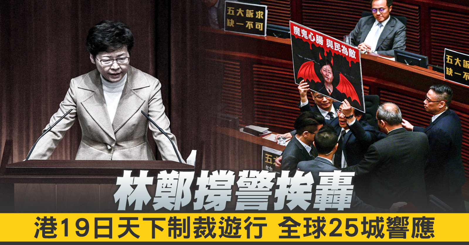 林鄭撐警挨轟 港19日天下制裁遊行 全球25城響應