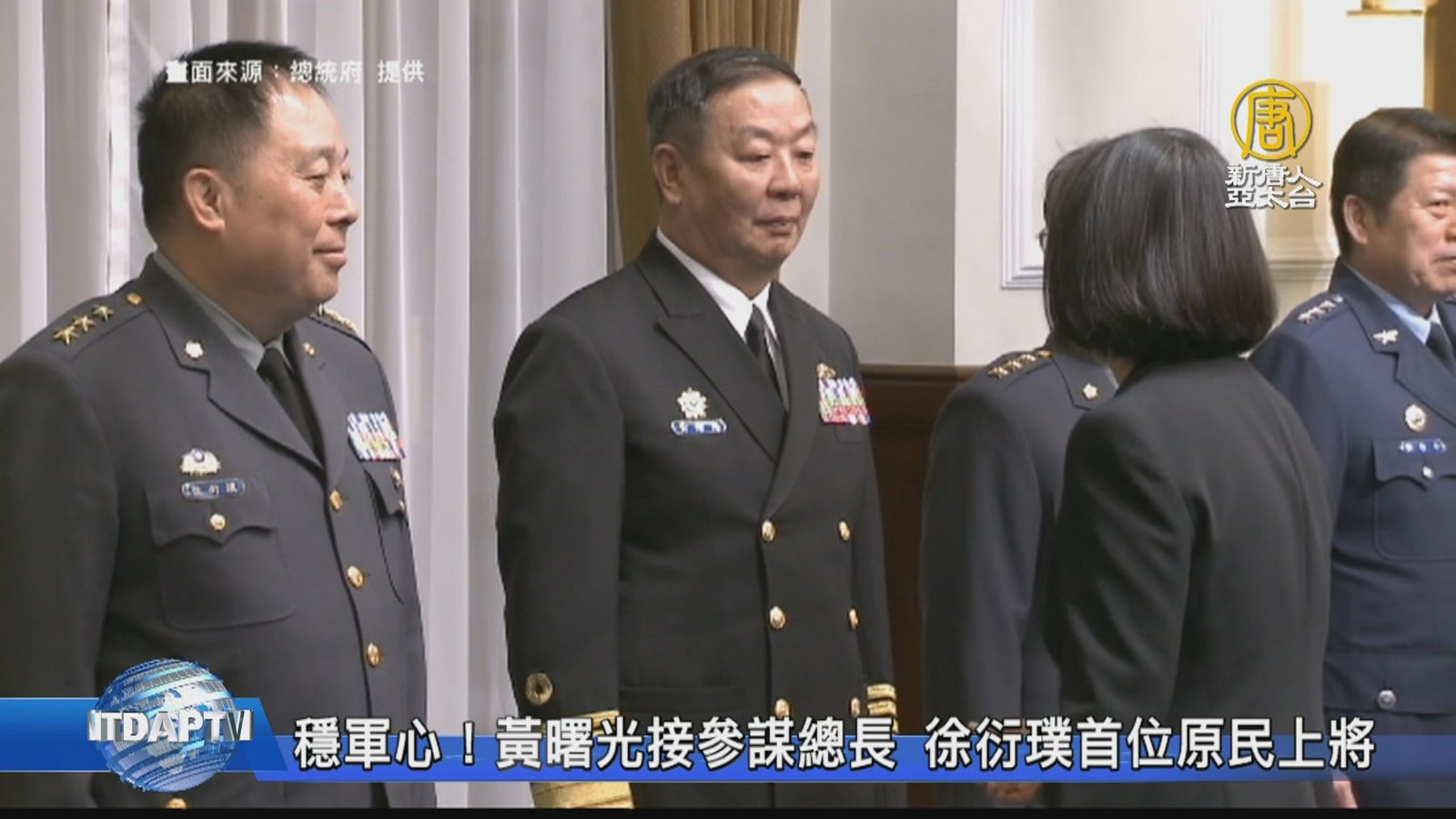 中華民總統蔡英文今天上午主持「國軍重要高階幹部晉任布達授階典禮」,副參謀總長執行官徐衍璞,成為國軍首位具有原住民血統的上將。蔡英文表示,中共近年來對台持續脅迫、滲透與打壓,國軍必須強化能力,展現寸步不讓、堅守不退的決心,讓國人對國軍有信心。 //asset3.ntdtv.com.tw/public/uploads/assets/2020/01/17/2020-01-17-5e21a5589ebcd.mp4 徐衍璞|黃曙光|沈一鳴|蔡英文|原住民|黑鷹迫降|黑鷹直升機2020-01-17 20:13:06