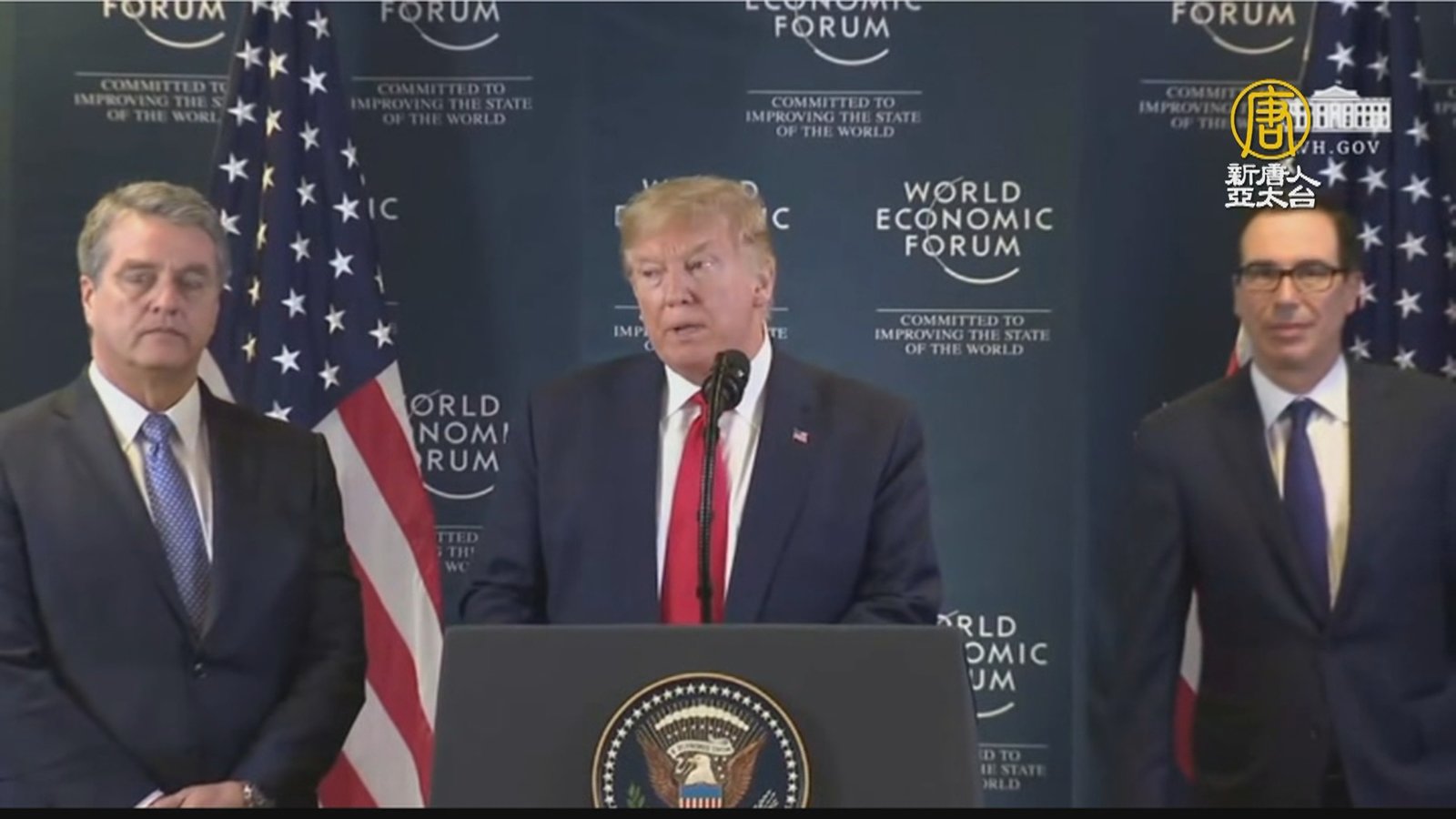 當地時間週三(1月22日),美國總統川普在瑞士的新聞發佈會上表示,此次達沃斯經濟論壇非常成功;川普並宣布,將很快擬定改革WTO的方案。 //asset3.ntdtv.com.tw/public/uploads/assets/2020/01/23/2020-01-23-5e299f280142a.mp4 達沃斯經濟論壇|川普|WTO|美國GDP|美股|美國失業率2020-01-23 21:20:21