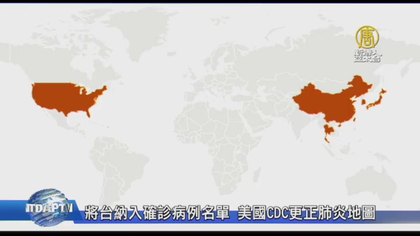 將台納入確診病例名單 美國CDC更正肺炎地圖