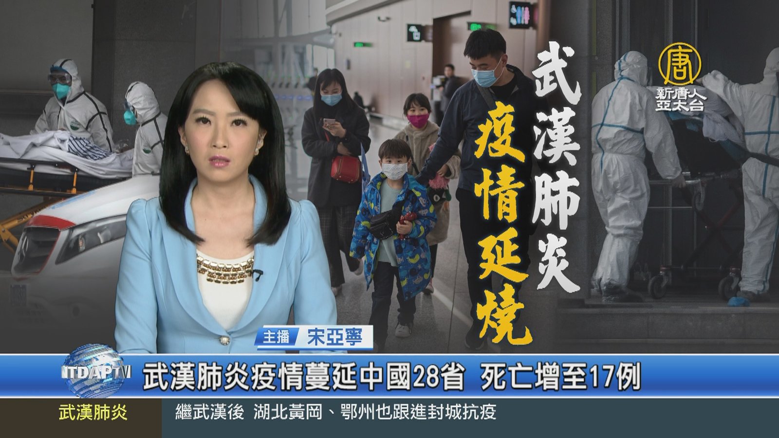 中國武漢在去年12月爆發新型冠狀病毒肺炎疫情,而且快速的擴散,亞洲多個地區包括台灣都出現確診病例,由於新型冠狀病毒的基因序列跟SARS非常相似,也再度喚起民眾對於SARS的驚恐回憶。到底兩種病毒有何差異?威脅程度又是如何? //asset1.ntdtv.com.tw/public/uploads/assets/2020/01/23/2020-01-23-5e299ad2ed6df.mp4 武漢肺炎|疫情|防疫|SARS2020-01-23 21:03:54