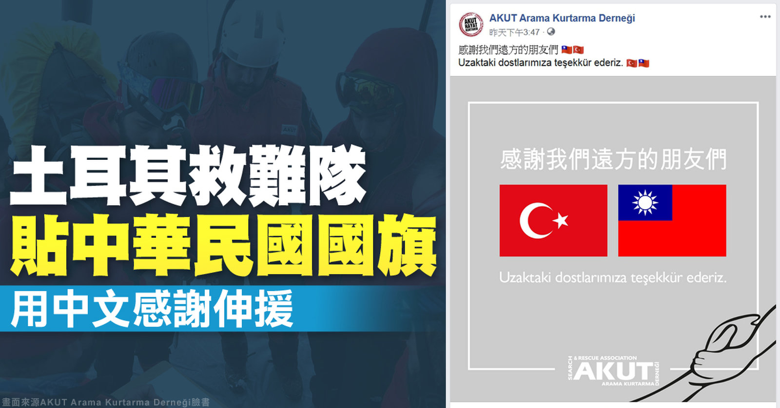 土耳其救難隊貼中華民國國旗 用中文感謝伸援|台灣速速看