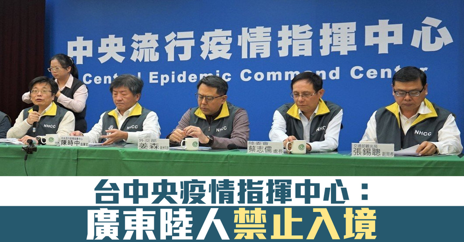 台中央疫情指揮中心:廣東陸人禁止入境