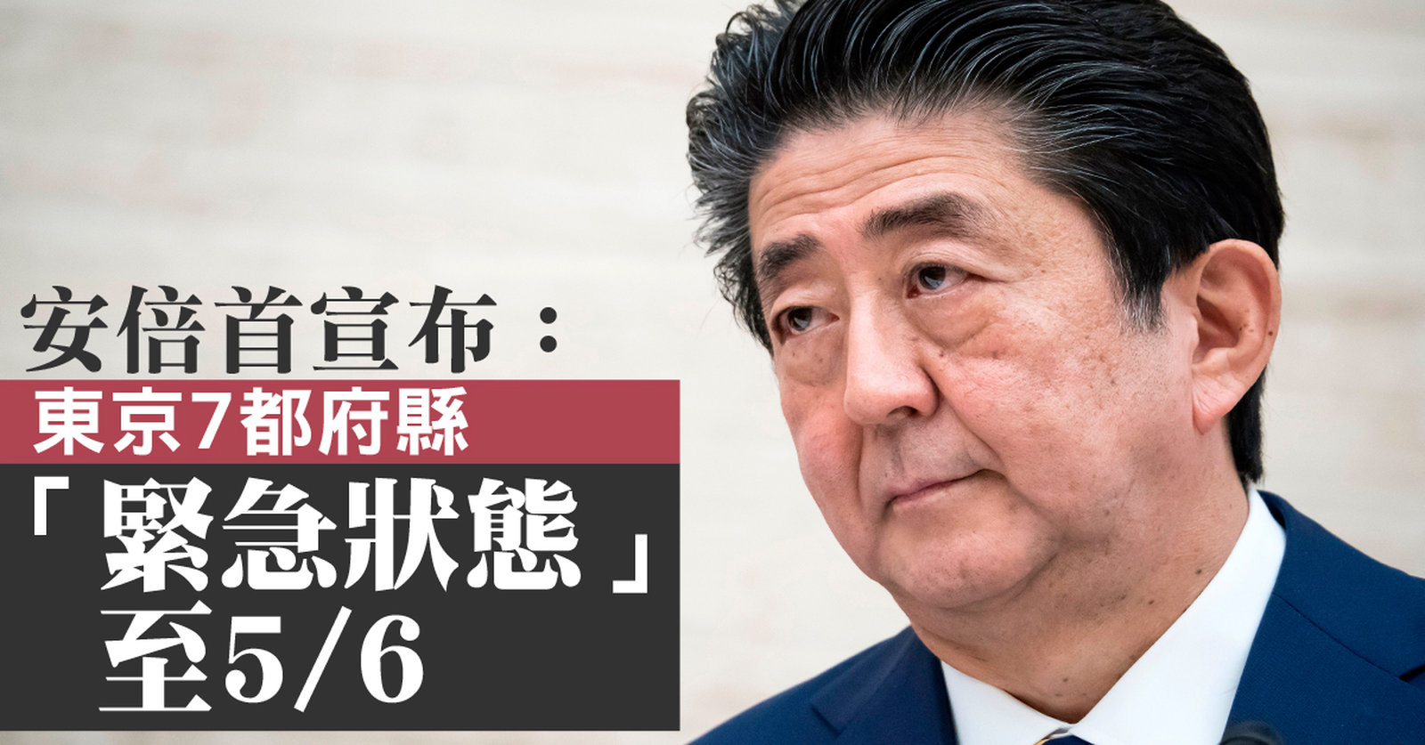安倍首宣布:東京7都府縣「緊急狀態」至5月6日