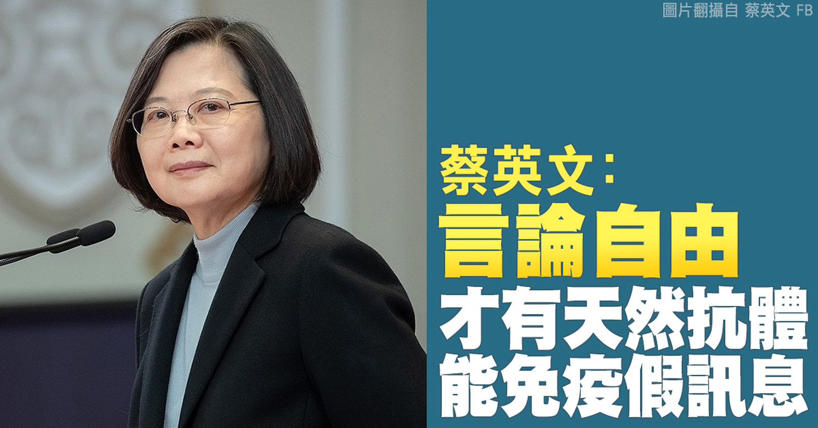 蔡英文:言論自由才有天然抗體.能免疫假訊息