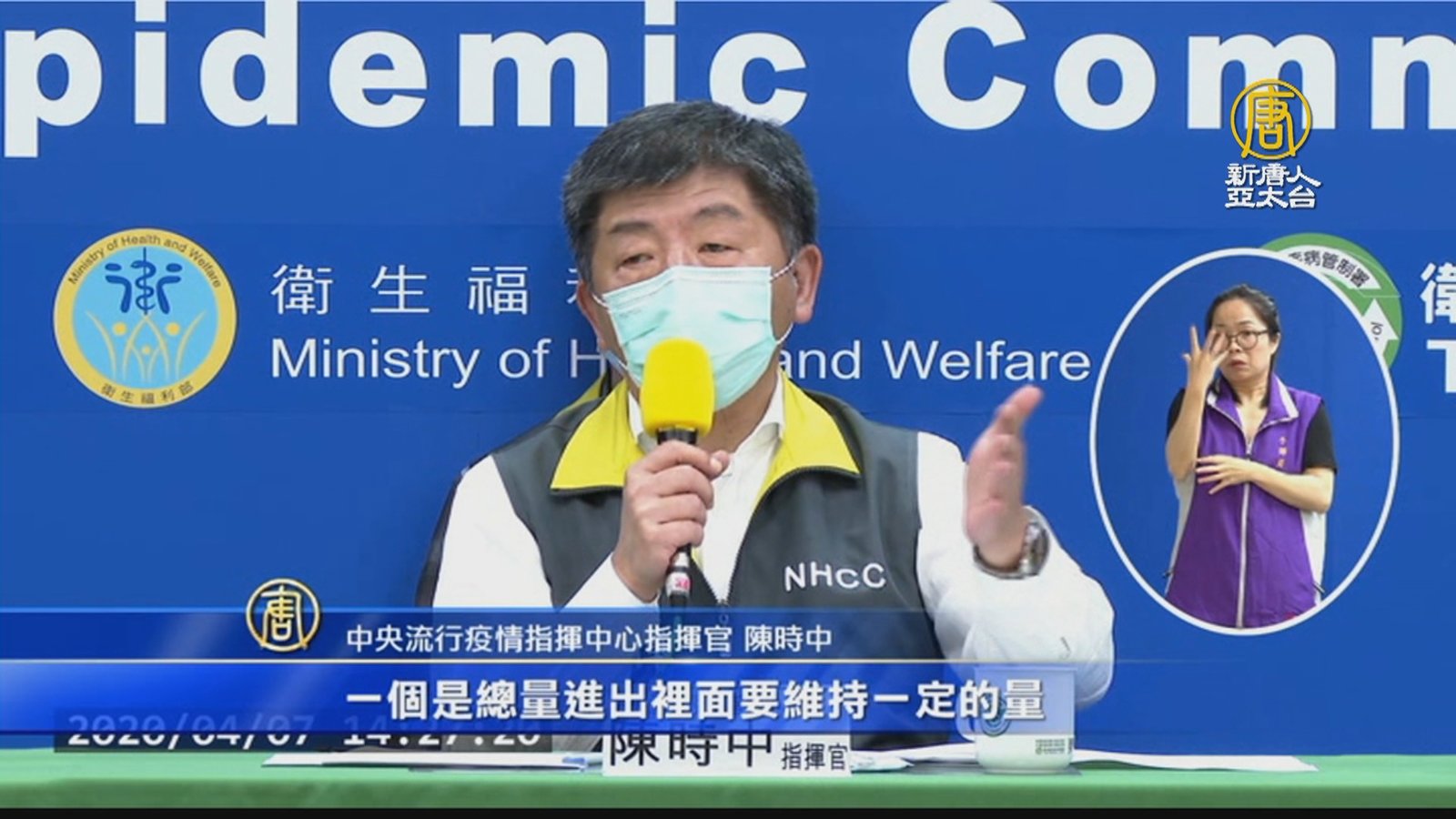 帶您來看到,今天(7日)中央疫情指揮中心,對外報告台灣面對中共肺炎,醫療整備跨入第三階段的因應作為。並針對疫情如果擴大,要進入第四階段時,應變醫院和指定醫院對病患,如何進行分艙分流,進行說明。 //asset2.ntdtv.com.tw/public/uploads/assets/2020/04/07/2020-04-07-5e8c7ebab422a.mp4 武漢肺炎|防疫|疫情|中共肺炎|醫療|檢疫|呼吸器|量能2020-04-07 21:21:05
