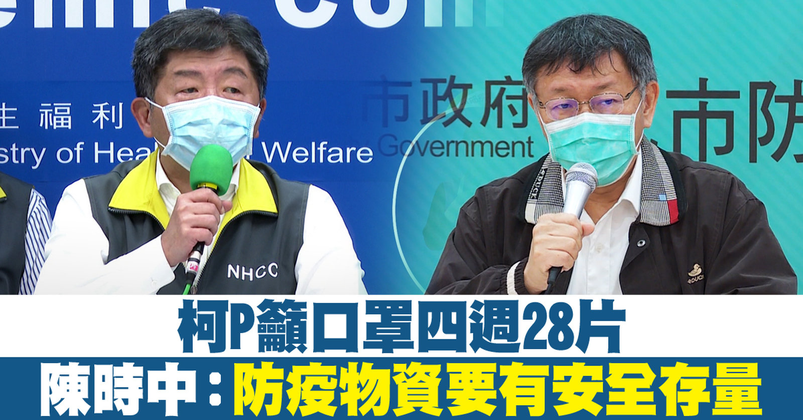 柯P籲口罩四週28片 陳時中:防疫物資要有安全存量