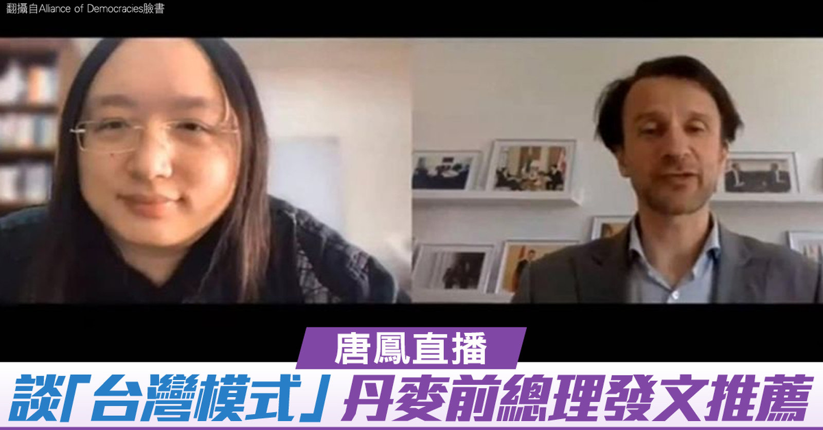 唐鳳直播談「台灣模式」 丹麥前總理發文推薦