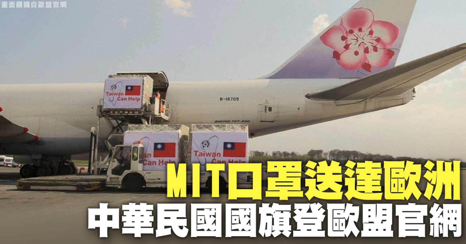 MIT口罩送達歐洲 中華民國國旗登歐盟官網