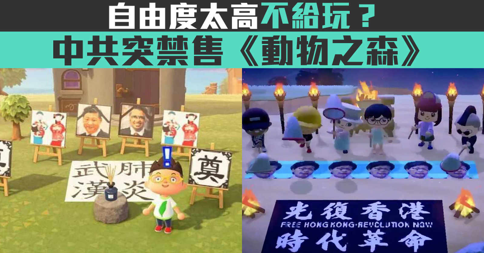 任天堂熱門電玩《動物森友會》(中國稱動物之森)傳出遭中國大陸電商平台下架,微博上午瘋傳相關截圖,討論閱讀量超過200萬人次。據傳,遊戲因為自由度高,網路上傳出有玩家惡搞習近平與WOH秘書長譚德塞的畫面截圖,更出現「武漢肺炎」、「武漢華南海鮮市場」等字眼。還有香港玩家在島上寫「光復香港,時代革命」等,但先前《劍三》才封鎖講中國武漢肺炎的玩家,如今又有動森被下架,顯見中共在疫情中,更收緊言論控管。 //asset2.ntdtv.com.tw/public/uploads/assets/2020/04/10/2020-04-10-5e906a1da9cd1.mp4 2020-04-10 21:46:16