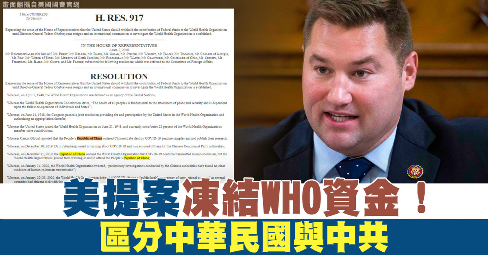 美提案凍結WHO資金!區分中華民國與中共
