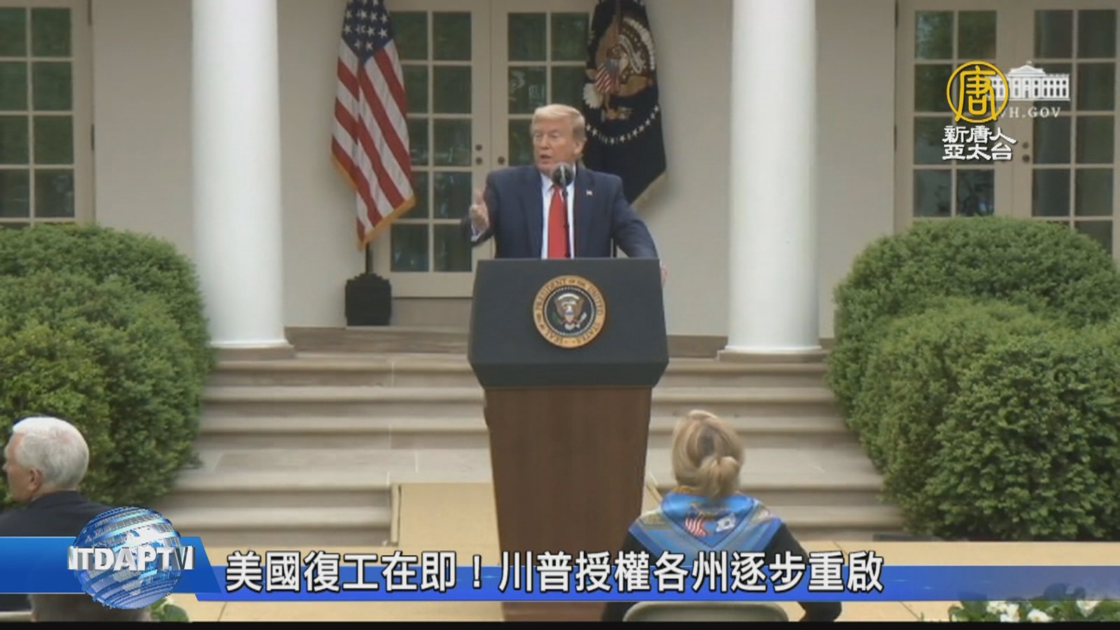 再來追蹤,中共病毒疫情衝擊下,全球紓困的進度。先看到,美國規劃重啟經濟,計畫已經接近完成,川普總統將授權各州長依照情況,各自在適當時機復工;疫情較不嚴重的州,在做好防疫準備的狀況下,可望在5月1日之前重啟。川普總統也將諮詢各行業領袖的建議,振興美國經濟。 //asset2.ntdtv.com.tw/public/uploads/assets/2020/04/15/2020-04-15-5e96ff8bd0ee7.mp4 中共肺炎|武漢肺炎|疫情|中共病毒|新型冠狀病毒|美國|復工|川普2020-04-15 20:30:36