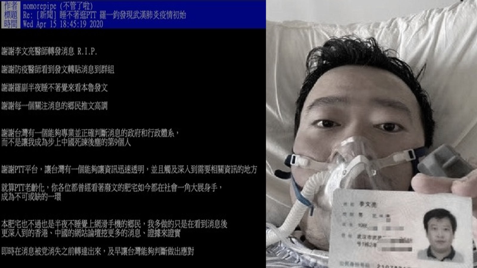 台灣防疫超前佈署,是什麼樣的關鍵因素,讓台灣能獲得疫情的訊息,提早因應呢?指揮中心週三透露,是因為PTT上一篇文章,才讓台灣政府,能迅速啟動應變機制。象徵台灣言論自由的PTT論壇,接收到中國大陸吹哨者李文亮的警告,在官民合作下成功防疫,成為全世界防疫模範。 //asset1.ntdtv.com.tw/public/uploads/assets/2020/04/16/2020-04-16-5e984ec67a2a3.mp4 武漢肺炎|防疫|疫情|抗疫|中共肺炎|超前佈署|PTT2020-04-16 20:23:09