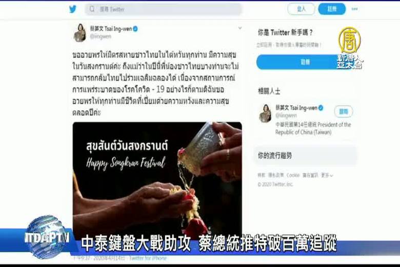 台灣防疫告捷,讓總統蔡英文連日(15日)登上國際媒體。為了讓台灣的聲音走入國際,蔡總統積極進行社群外交,日前還首度在推特以泰文推文,祝泰國朋友潑水節快樂,加上最近網路中泰大戰的助攻下,總統推特已經破百萬人追蹤。 //asset3.ntdtv.com.tw/public/uploads/assets/2020/04/16/2020-04-16-5e985b945b73f.mp4 富比世|CNN|蔡英文|中共肺炎|武漢肺炎|疫情|防疫2020-04-16 21:20:20